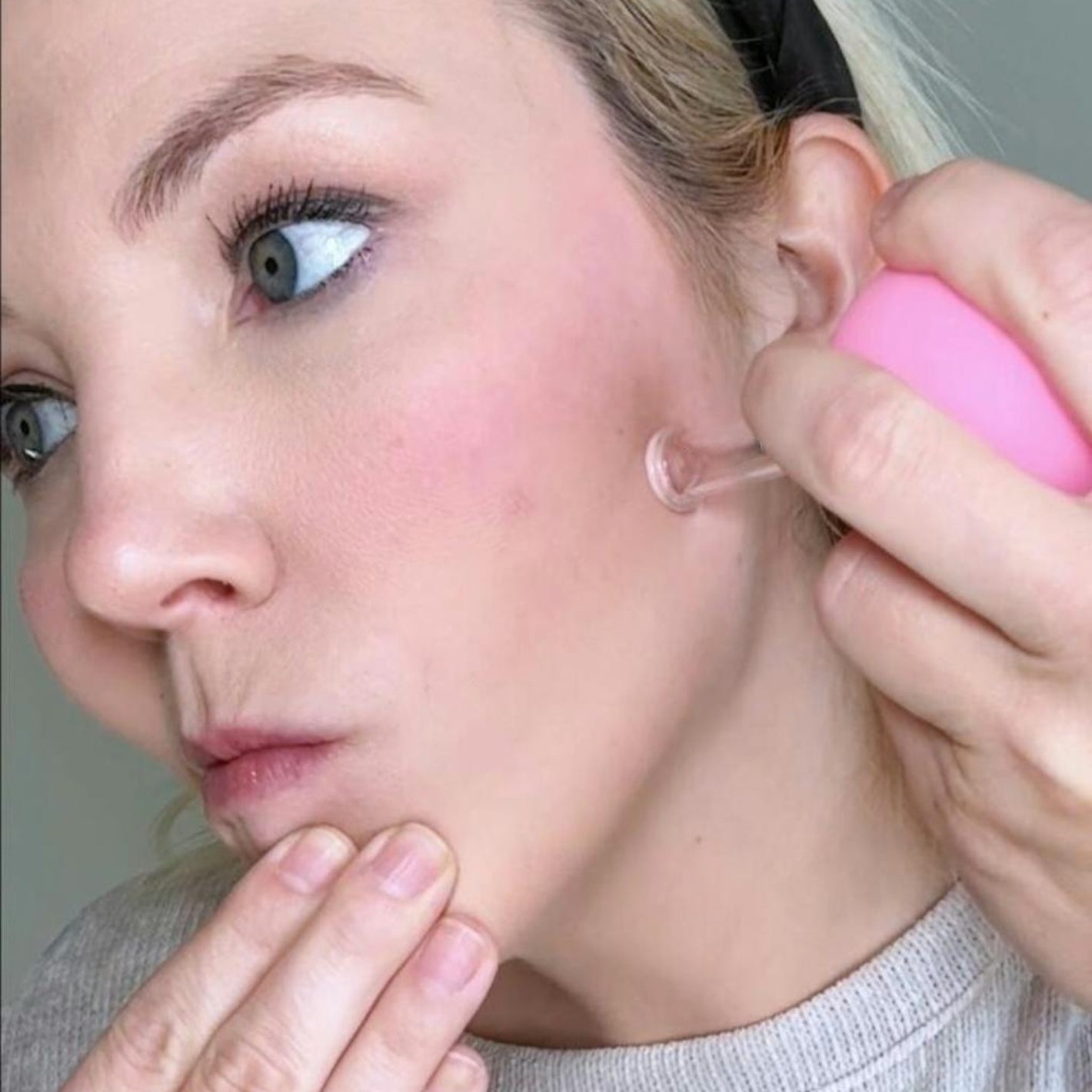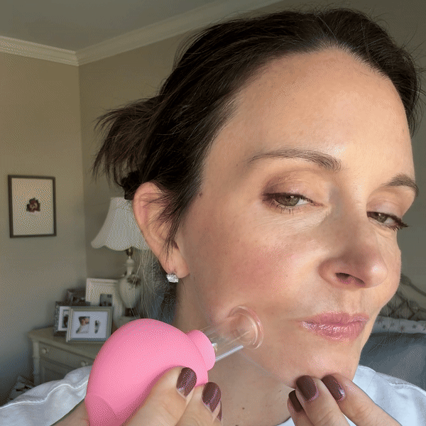 Lumora Pop works by using light suction to gently lift the skin. You apply a thin layer of oil or serum, then glide the cup over your face in upward motions.