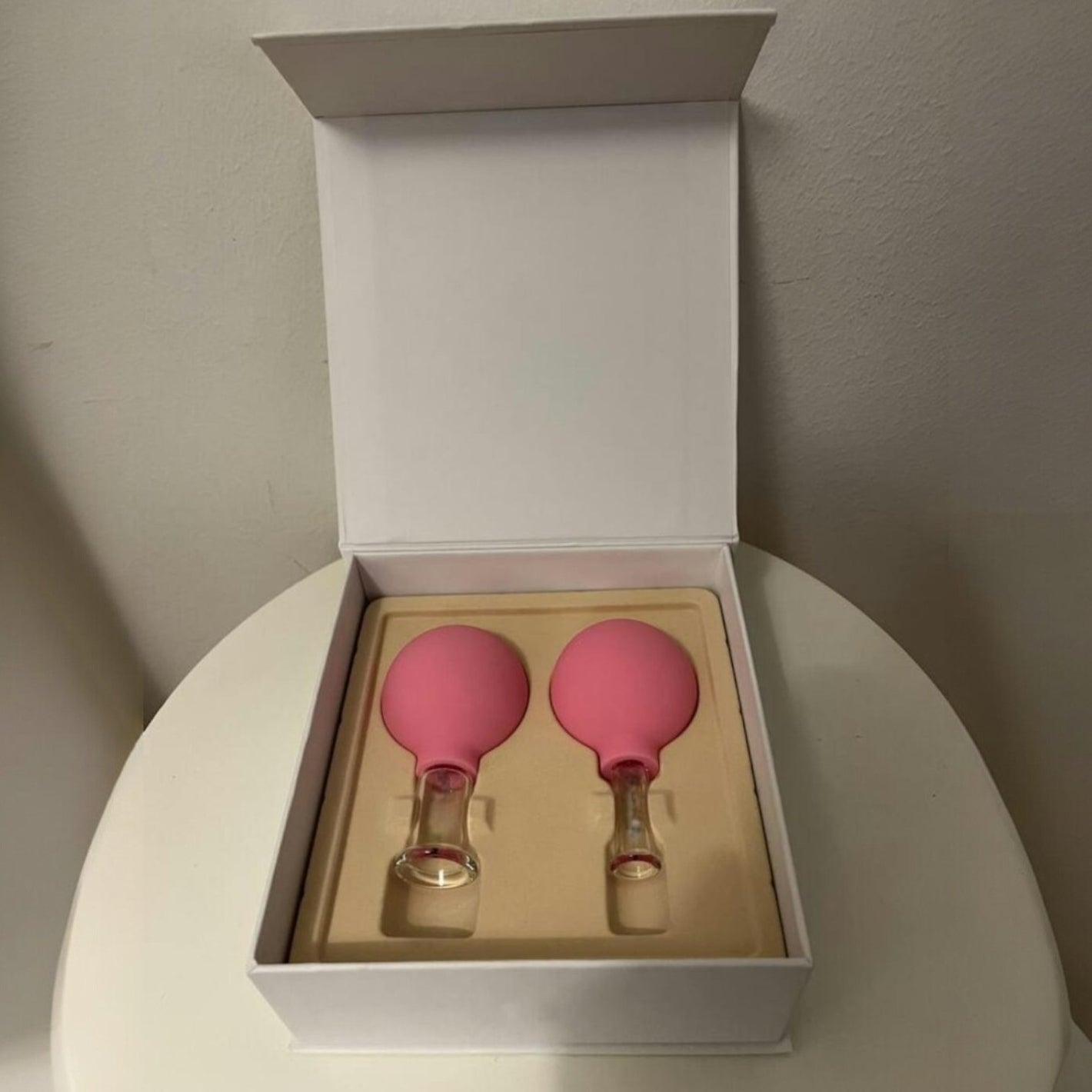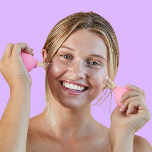 Lumora Pop is a modern take on the ancient technique of facial cupping, using two cup sizes with gentle suction to lift and refresh the skin.