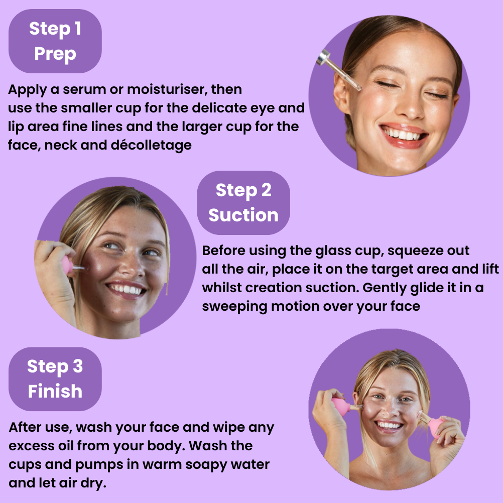 This process, rooted in ancient cupping therapy, helps encourage lymphatic drainage and relieves facial tension, leaving your skin refreshed, glowing, and more youthful over time.