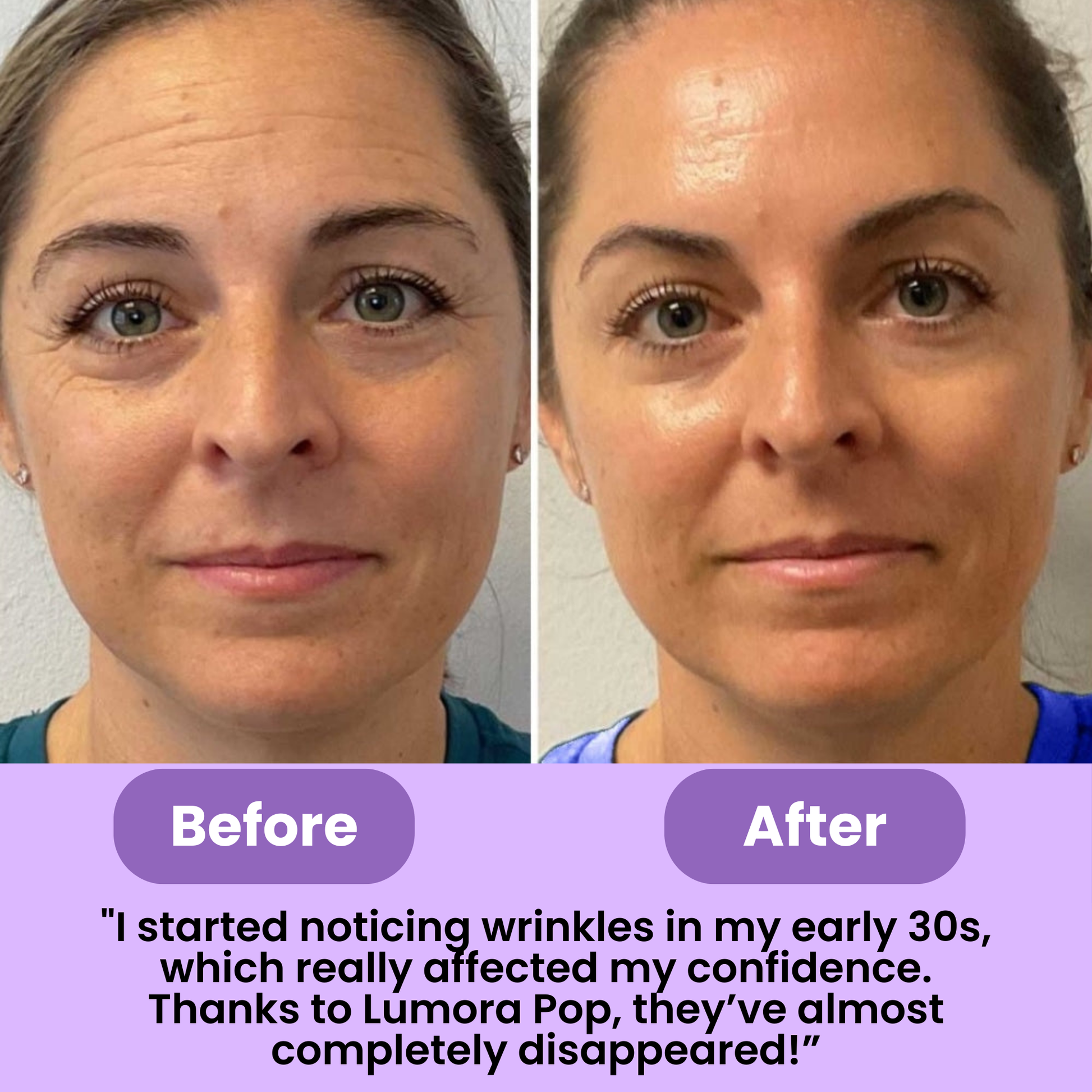 “I always wake up with swollen eyes and a heavy-looking face. After a few weeks of using LumoraPop, the puffiness is basically gone. My under-eyes look brighter and my whole face feels lighter. It’s now the first step in my morning routine. Quick, easy, and it works.”